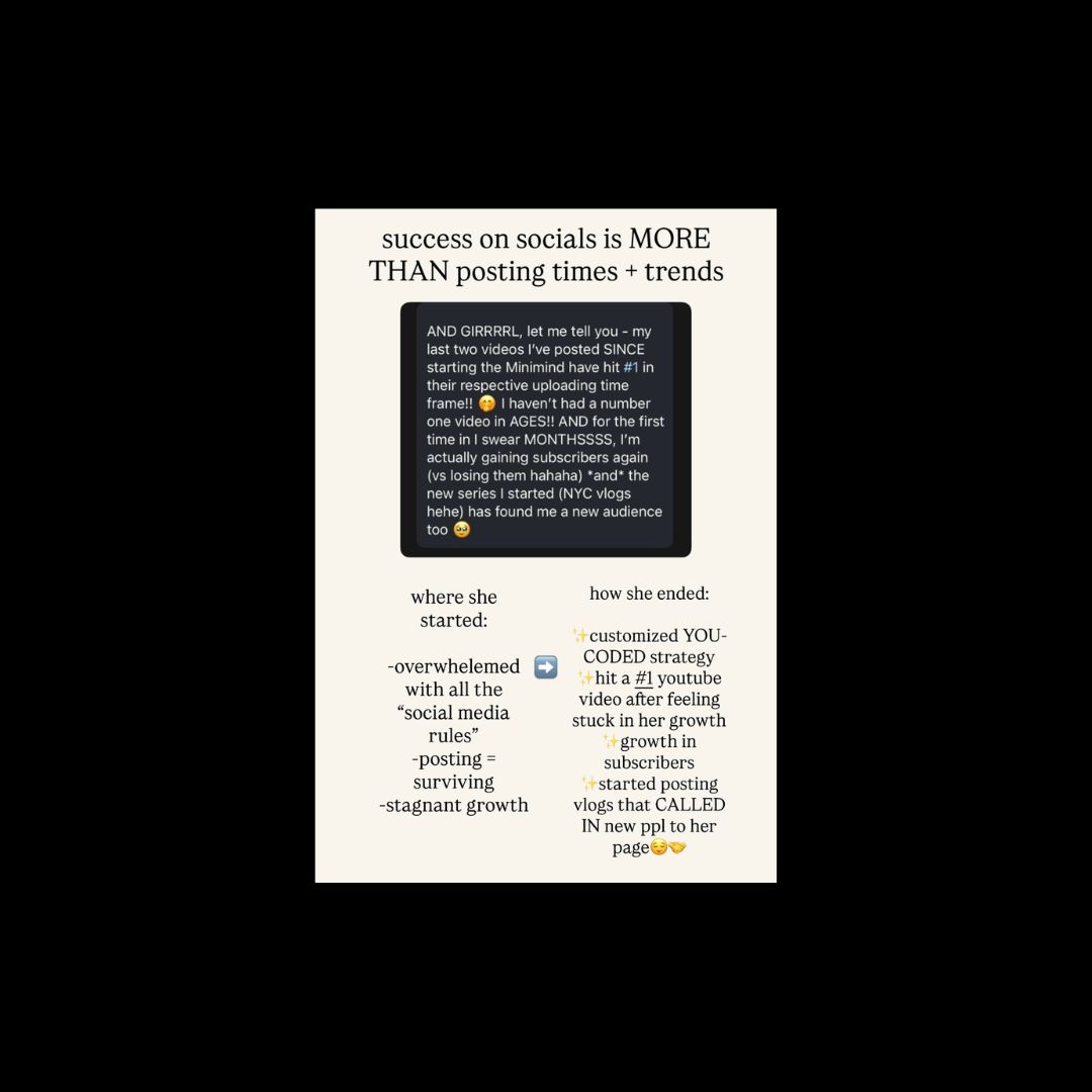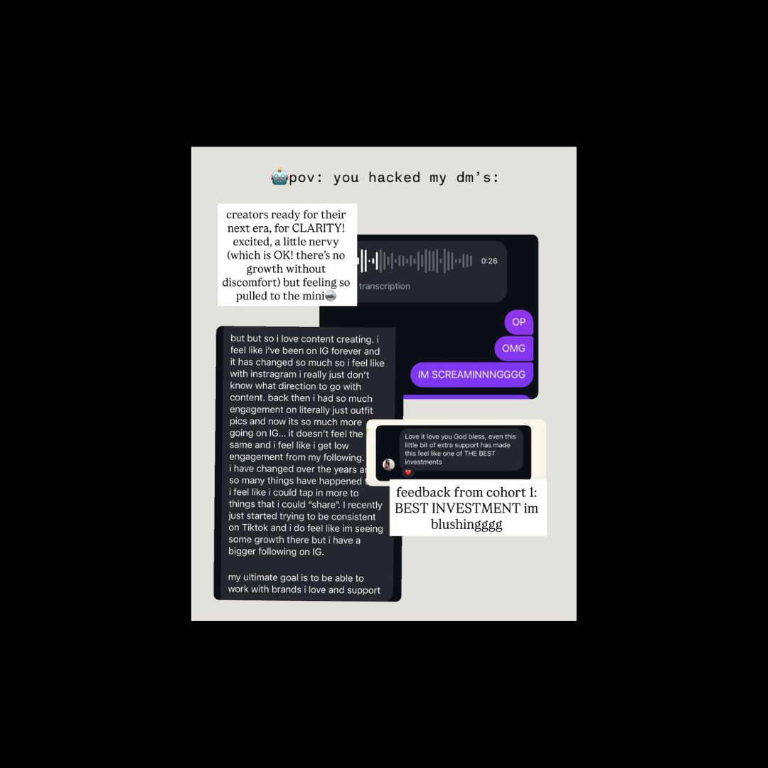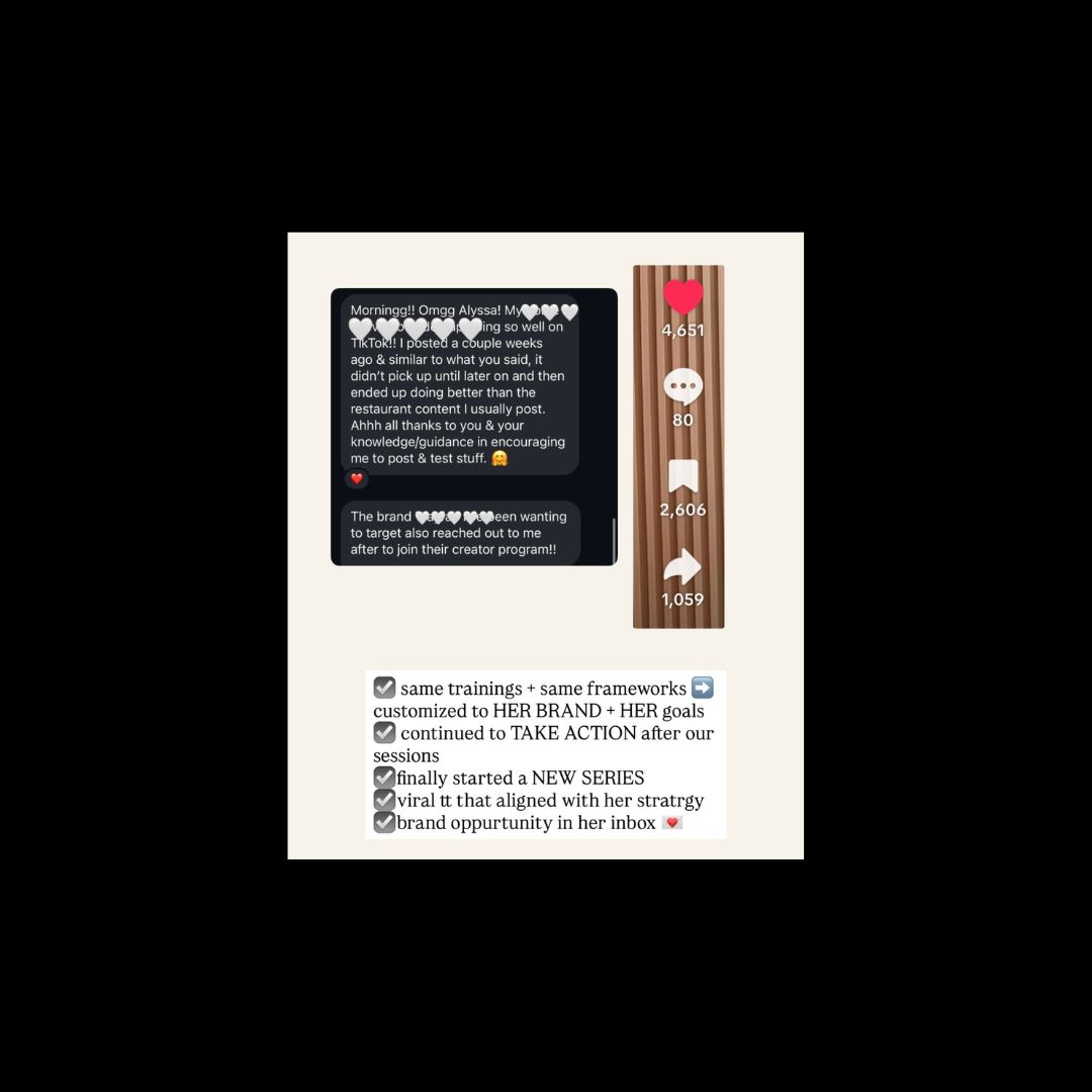 This is where I review your content honestly (with luv <3), call out the gaps + blindspots that are holding you back, and set the tone for what we’re fixing first.