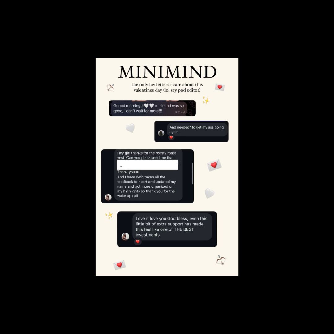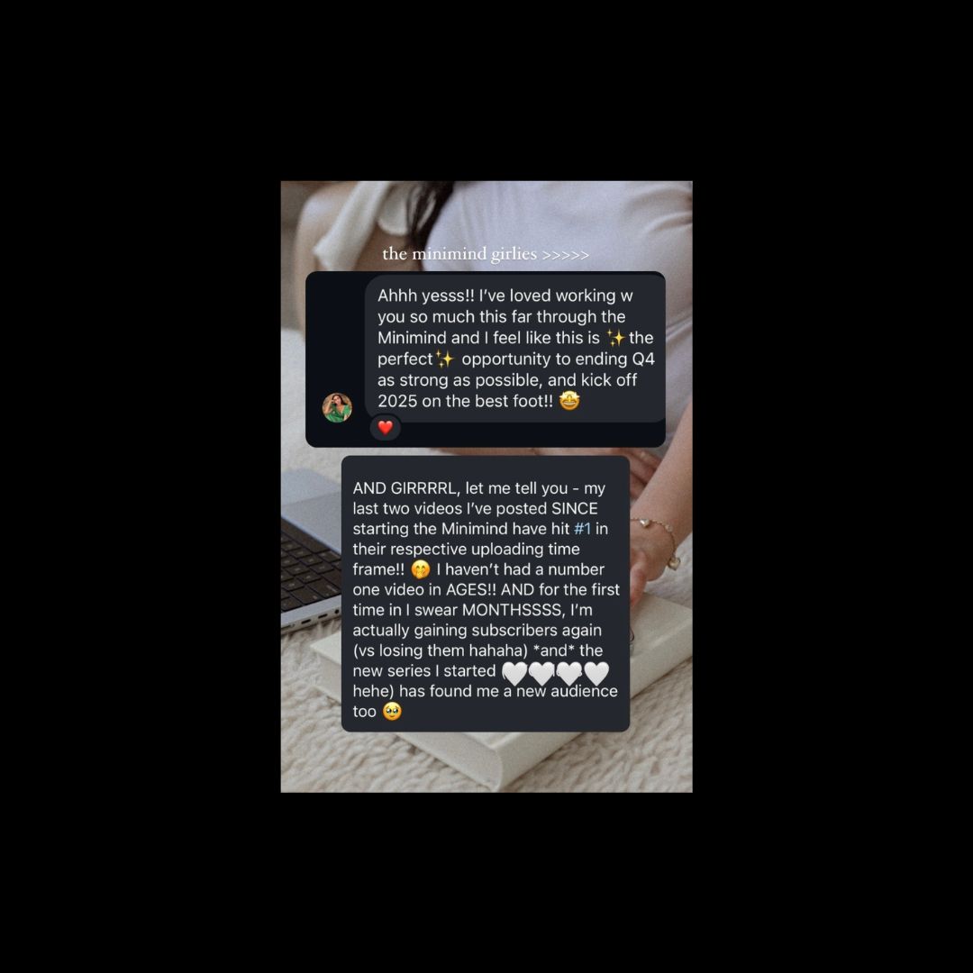 The Minimind is for creators, founders, and service providers who are ready to take social media seriously, but don’t want to do it alone anymore. It’s for you if you want strategy, structure, and real-time feedback so you can stop guessing and start executing with direction. This is not a watch-and-disappear program. Your presence matters here 🖤