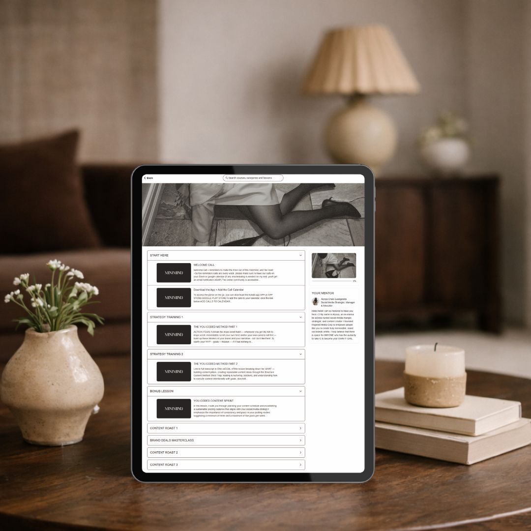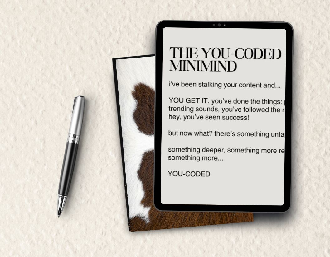 Live training on The YOU-CODED™ Method. You got the surface level stuff down, but now we’re building the strong foundations of your brand and learning what it really means to be “strategically authentic”. We’re going deeper than topics and content pillars, we’re locking in your why, your how, and that thing that makes you different (AKA your vibe).